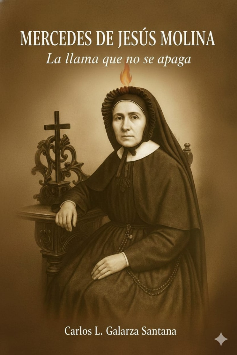 MERCEDES DE JESUS MOLINA, LA LLAMA QUE NO SE APAGA, ES UN ENSAYO SOBRE LA VIDA D4 ESTA VENERABLE MUJER, BEATIFICADO EL 1 DE FEBRERO DE 1985 Y EN PROCESO DE CANONIZACION, EN EL LIBRO SE HACE UN RECORRIDO DESDE SU NACIMIENTO HASTA LAS, ACCIONES ACTUALES QUE SE DESARROLLAN CON EL FIN DE CONSEGUIR SU SANTIFICACION