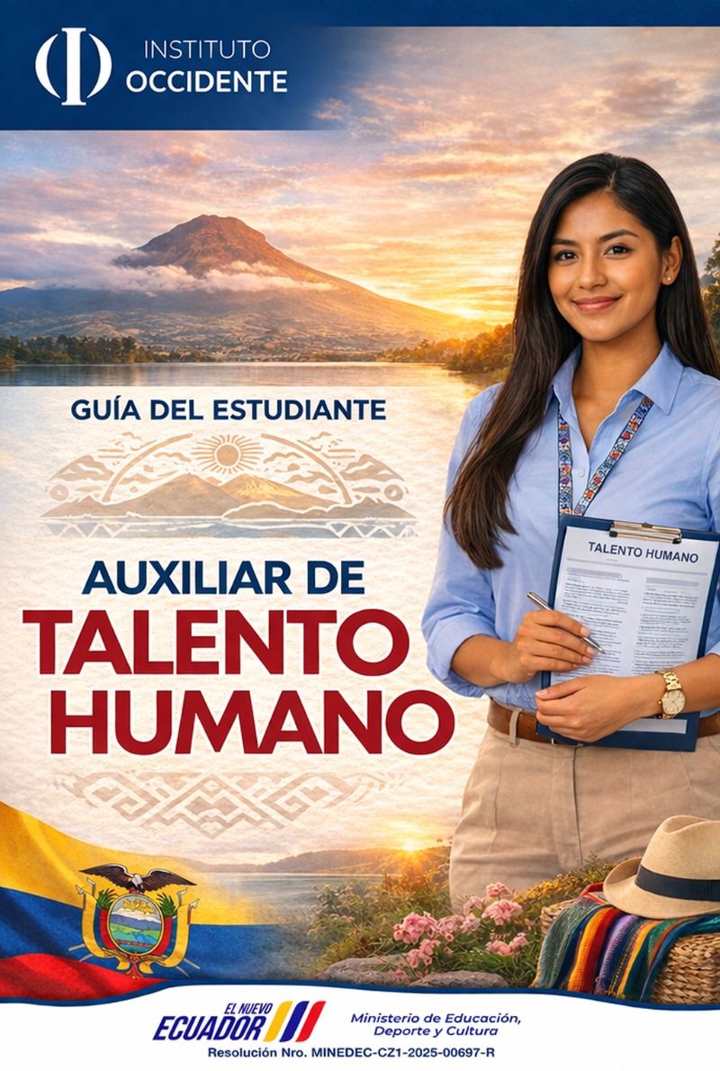 La guía académica “Auxiliar de Talento Humano” del Instituto Ecuatoriano de Estudios Occidente constituye un recurso formativo integral orientado al desarrollo de competencias técnicas y administrativas en la gestión del personal. Enmarcada en el contexto ecuatoriano, la obra articula fundamentos teóricos, normativa vigente y aplicación práctica en procesos como reclutamiento, documentación, nómina y bienestar laboral. Su enfoque pedagógico facilita el aprendizaje progresivo mediante casos reales, palabras clave y desarrollo estructurado de contenidos. Como nuestro compromiso, se promueve valores como la ética, la confidencialidad y la responsabilidad institucional. Esta guía se posiciona como un instrumento clave para fortalecer perfiles profesionales en el ámbito del talento humano.